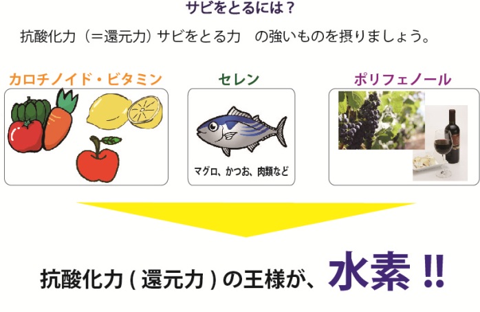 体のサビ(活性酸素)をとるには、抗酸化力のある食べ物を摂ることが大切です。